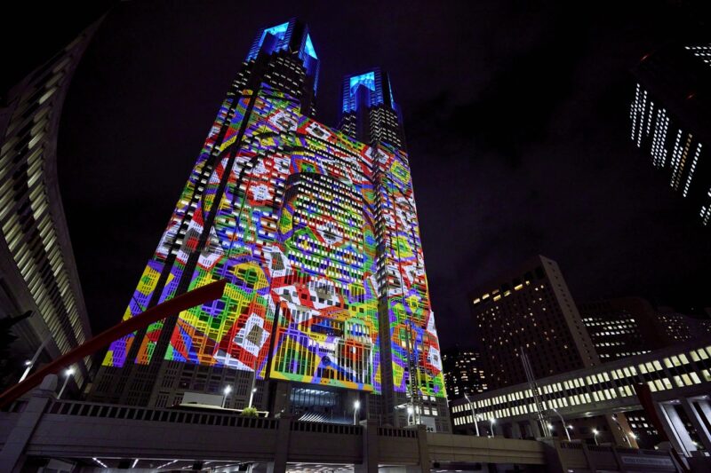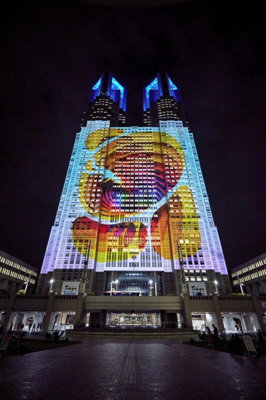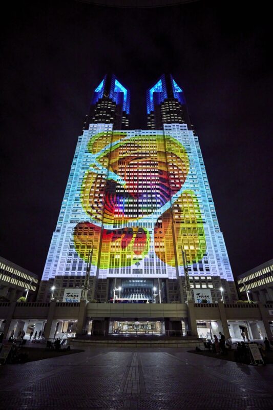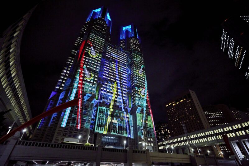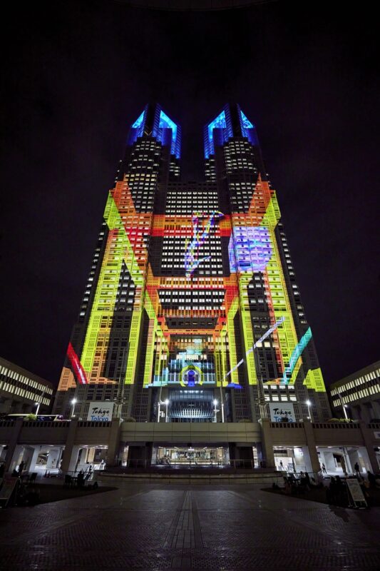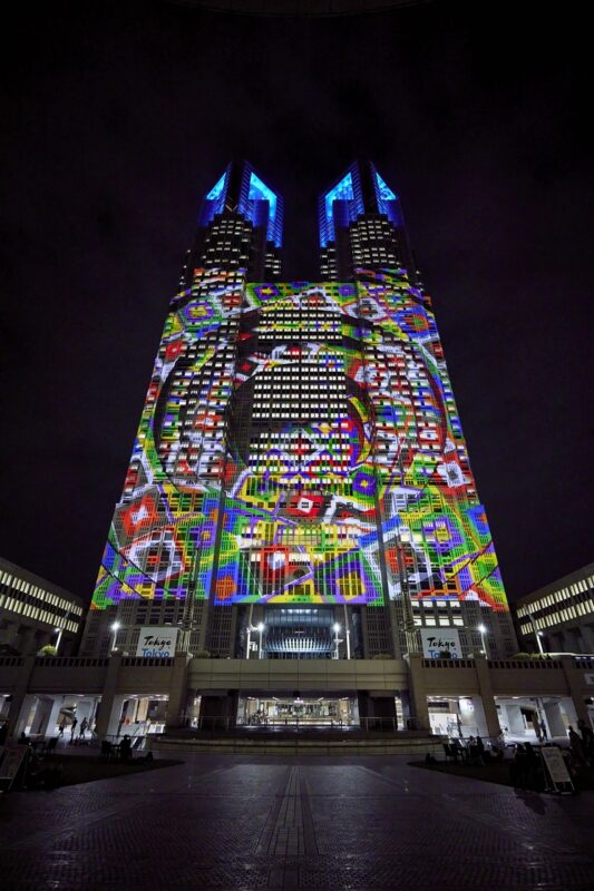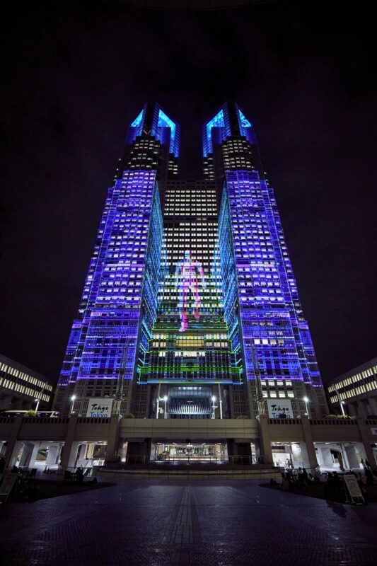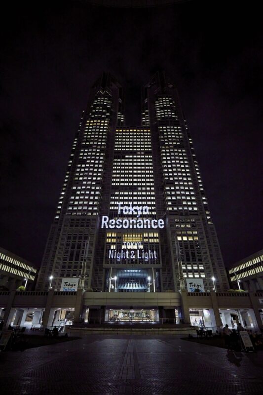 都庁舎は、その膨大なエネルギーを映し出す光と音の共鳴装置となり、街の過去・現在・未来をひとつのビートに束ねて放つ。